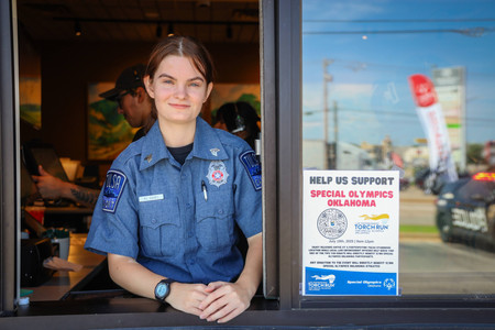 Officers got the chance to talk with citizens, enjoy some coffee, and even throw on an apron and work as baristas! All of the tips received benefitted Special Olympics Oklahoma, raising $1,600 among the three locations.